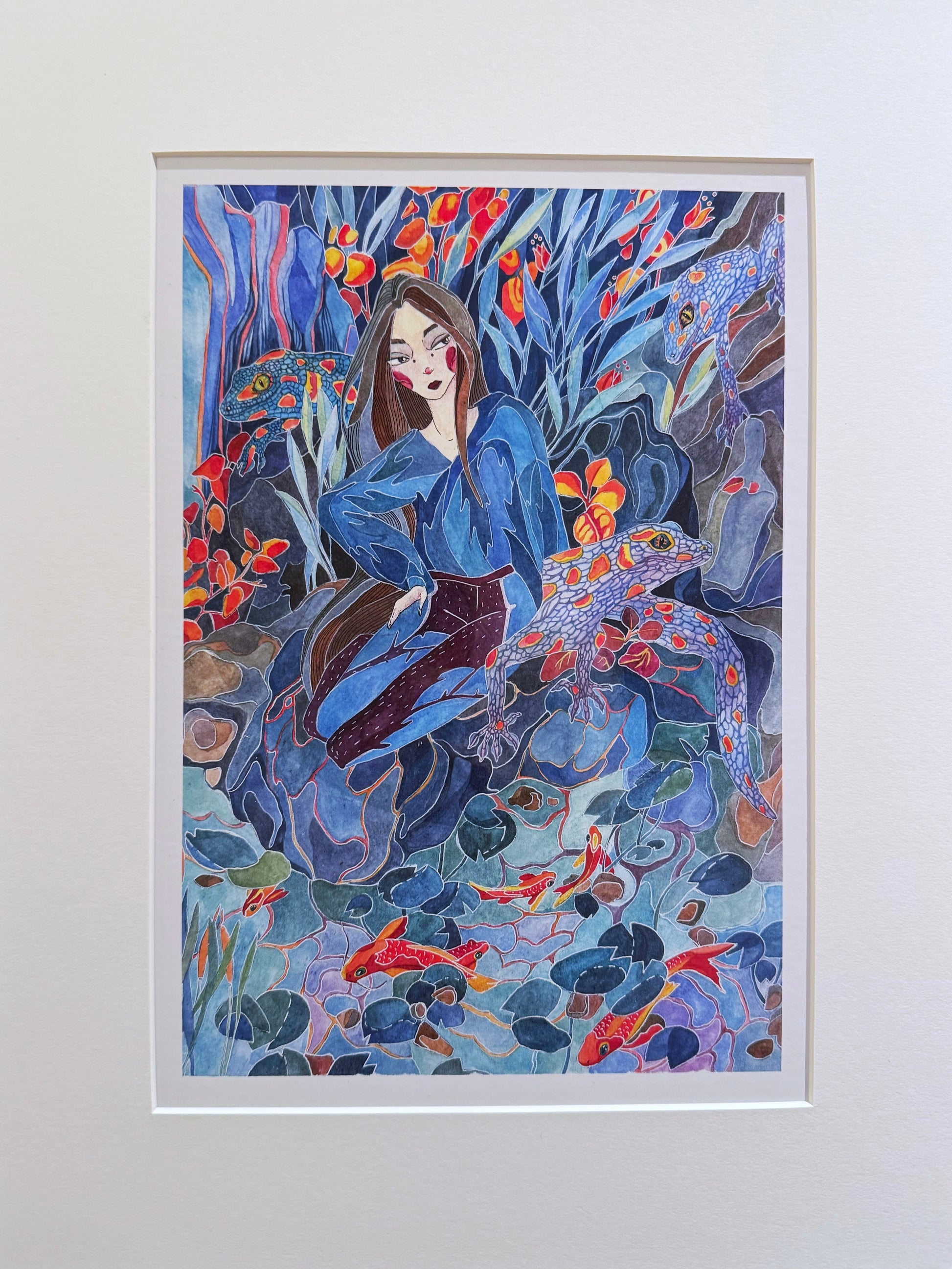 High quality print reproduction of an author's watercolor on paper drawing. Printed with archival inks for long-lasting color and clarity. Printed on archival grade, acid free, thick, textured paper.